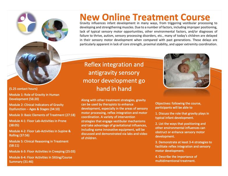 Using Gravity to Facilitate Sensory Motor Development in Infants and Young Children. A one-day course for occupational and physical therapists. Contact: . For sample brochure: see below.